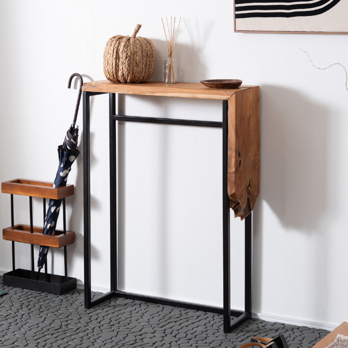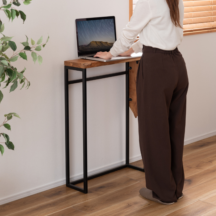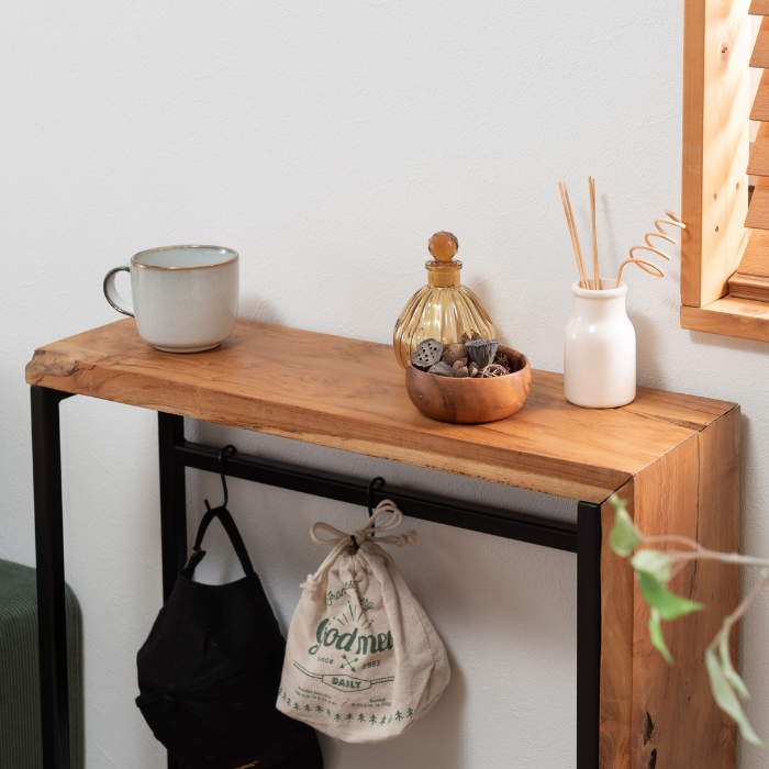 ●温かみのある天然木とブラックスチールの組み合わせが美しく、コンパクトな設計で玄関や窓際など、様々なスモールスペースで個性的な表情を演出します。